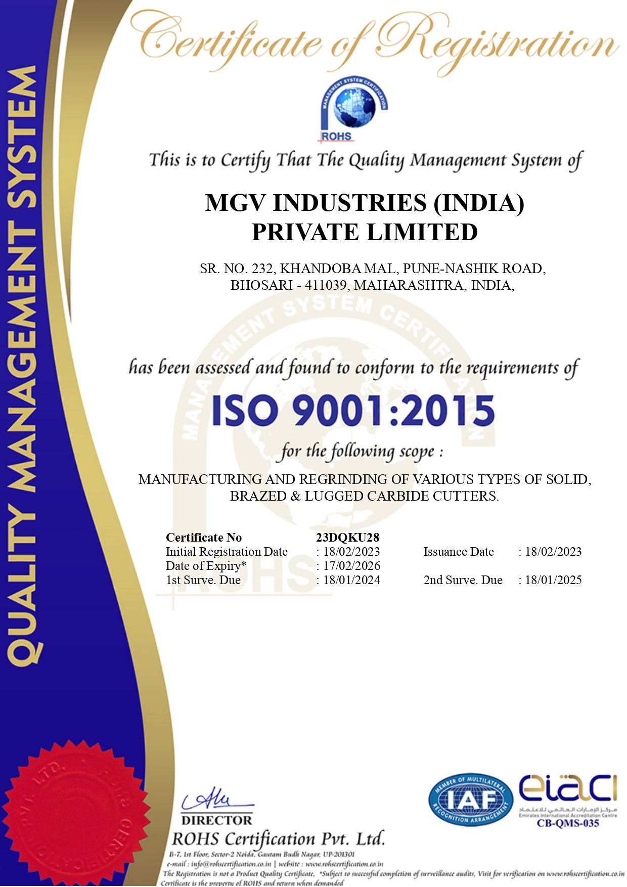 MGV Industries India Pvt. Ltd. Incorporated a manufacturer of high precision engineered custom, standard and modified standard cutting tools. MGV Industries India Pvt. Ltd. works with the following cutting tool materials: high-speed steel, solid carbide, and carbide-tipped, as well as P.C.D. MGV Industries India Pvt. Ltd., specializes in custom carbide step drills and form tools, in addition to offering a standard line of variable fluted end mills, we offer laser etching, coatings, and re-grinding services MGV Industries India Pvt. Ltd. differentiates itself in the marketplace by maintaining the utmost quality standards, the latest in manufacturing technology and unbeatable customer service.